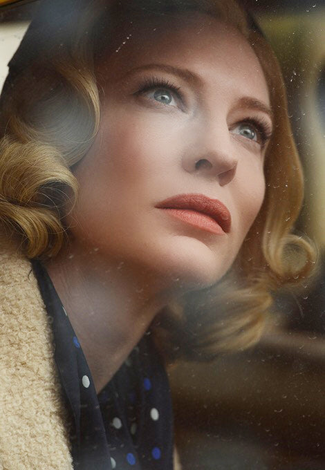 M.R. Yes, when I spoke to the team, Todd, Sandy and Kay (Georgiou, Cate's hair designer), Grace Kelly was an absolutely obvious reference point. So I pulled together lots of images of her alongside other references and worked with Cate to show her the direction we were going in. Cate also has a lot of very specific ideas herself - she’s got a wonderful sense of style and a great intuition, and there were things in the character that she wanted to bring out, so it was very collaborative in that way. A lot of people have asked me about the coral lip colour - Sandy was using lots of coral colours for the scarves and accessories and I thought that shade of lipstick would be perfect. When I’ve worked on other period films with Cate we’ve used darker reds so it was nice for me to be able to create a different look - and the gorgeous softness of the coral is so beautiful against Cate’s pale skin.