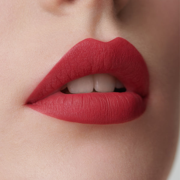 This beautiful, muted rose red is perfect for those with fair skin who want a softer take on a statement, red lipstick.