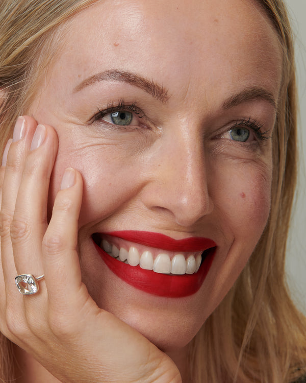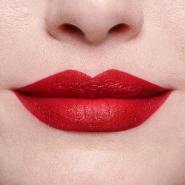A rich, deep, neutral red hue that suits everyone and works beautifully on fair skin. As it’s slightly sheer and buildable… it’s perfect for red lip novices!