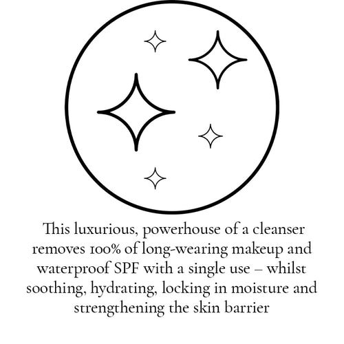 This luxurious, powerhouse of a cleanser instantly removes 100% of long-wearing makeup and waterproof SPF with a single use – whilst soothing, hydrating, locking in moisture and strengthening the skin barrier.