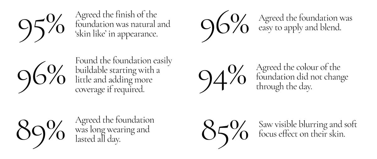 *Clinically proven to last for a minimum of 12-hours, after one application, with no colour change / oxidisation.